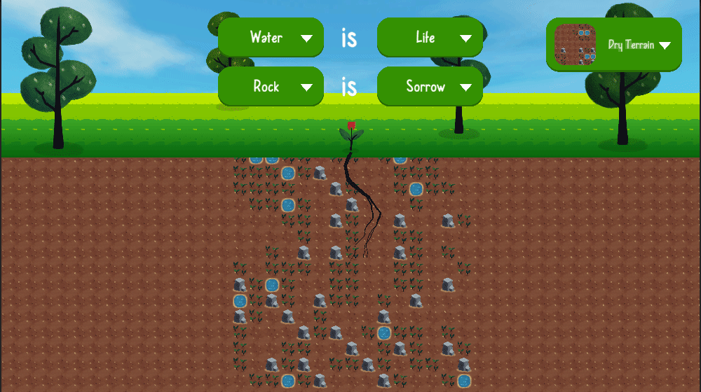 In this machine-learning sandbox, your goal is to tell a flower how to grow and watch its roots spread as you've directed. Can you guide the flower to water *and* make it drink? Developed for Global Game Jam 2023.